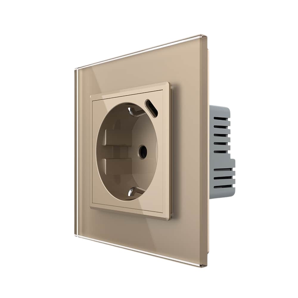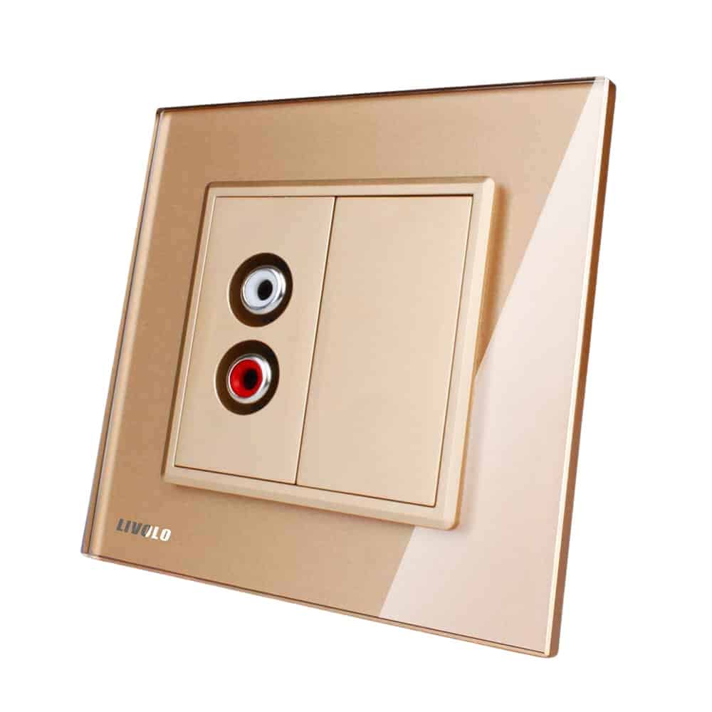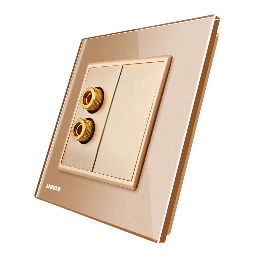 Priza simpla audio Livolo cu rama din sticla, auriu, VL-C791AD-13