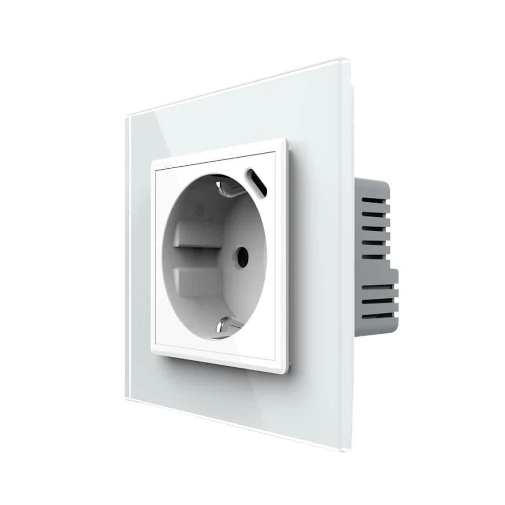 Priza simpla cu blank Livolo cu rama din sticla 3M, standard Italian, Serie noua, alb, VL-C9-C1EU-11