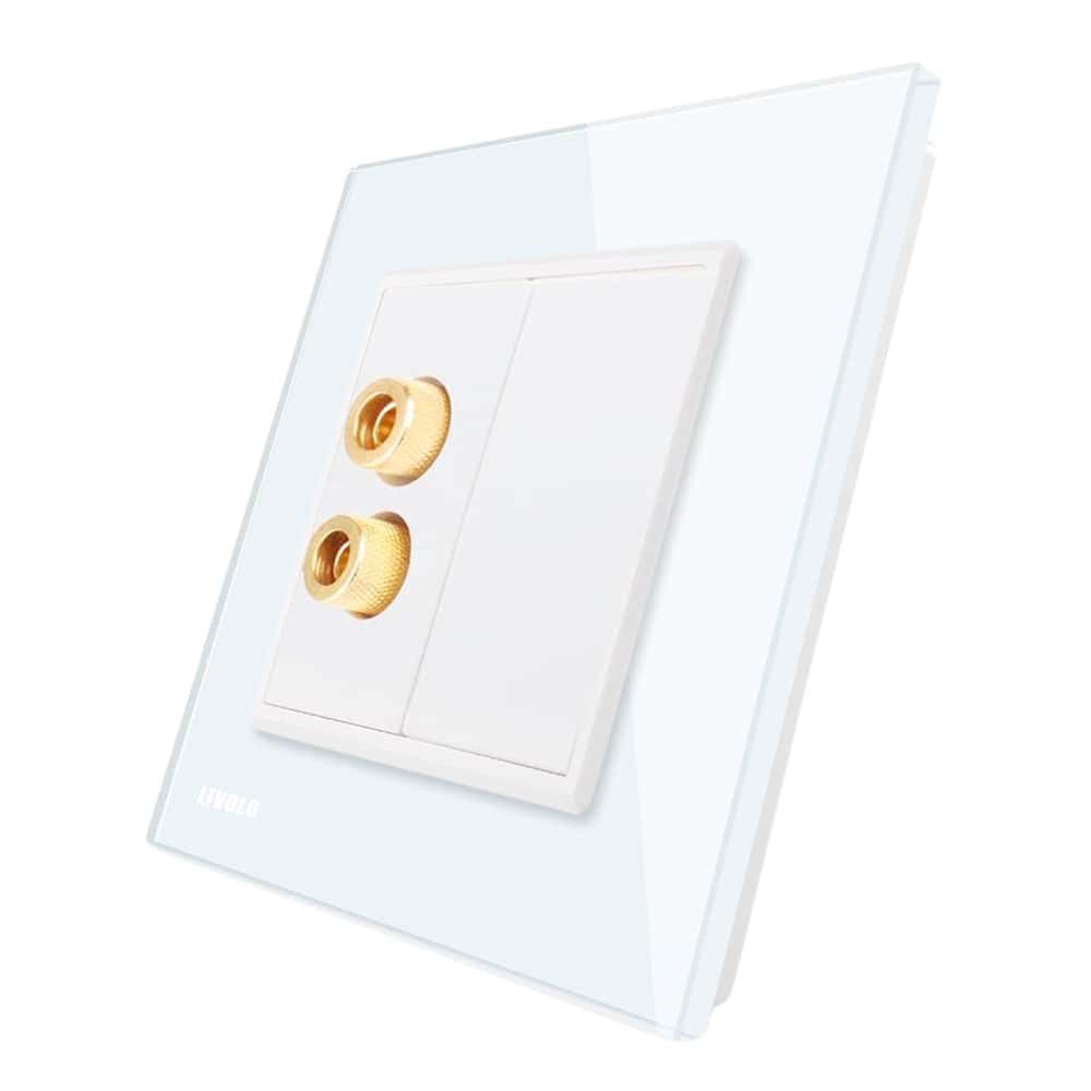 Priza simpla audio Livolo cu rama din sticla, alb, VL-C791AD-11