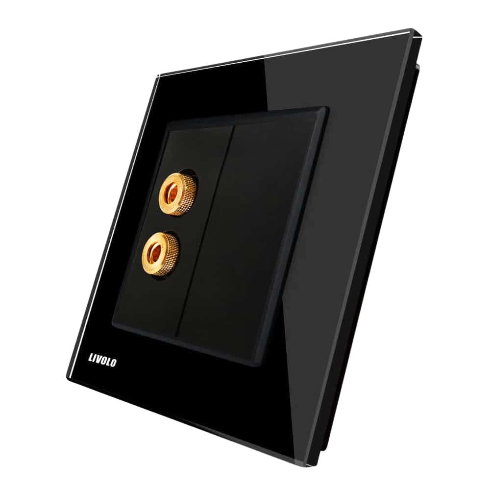 Priza simpla audio Livolo cu rama din sticla, negru, VL-C791AD-12