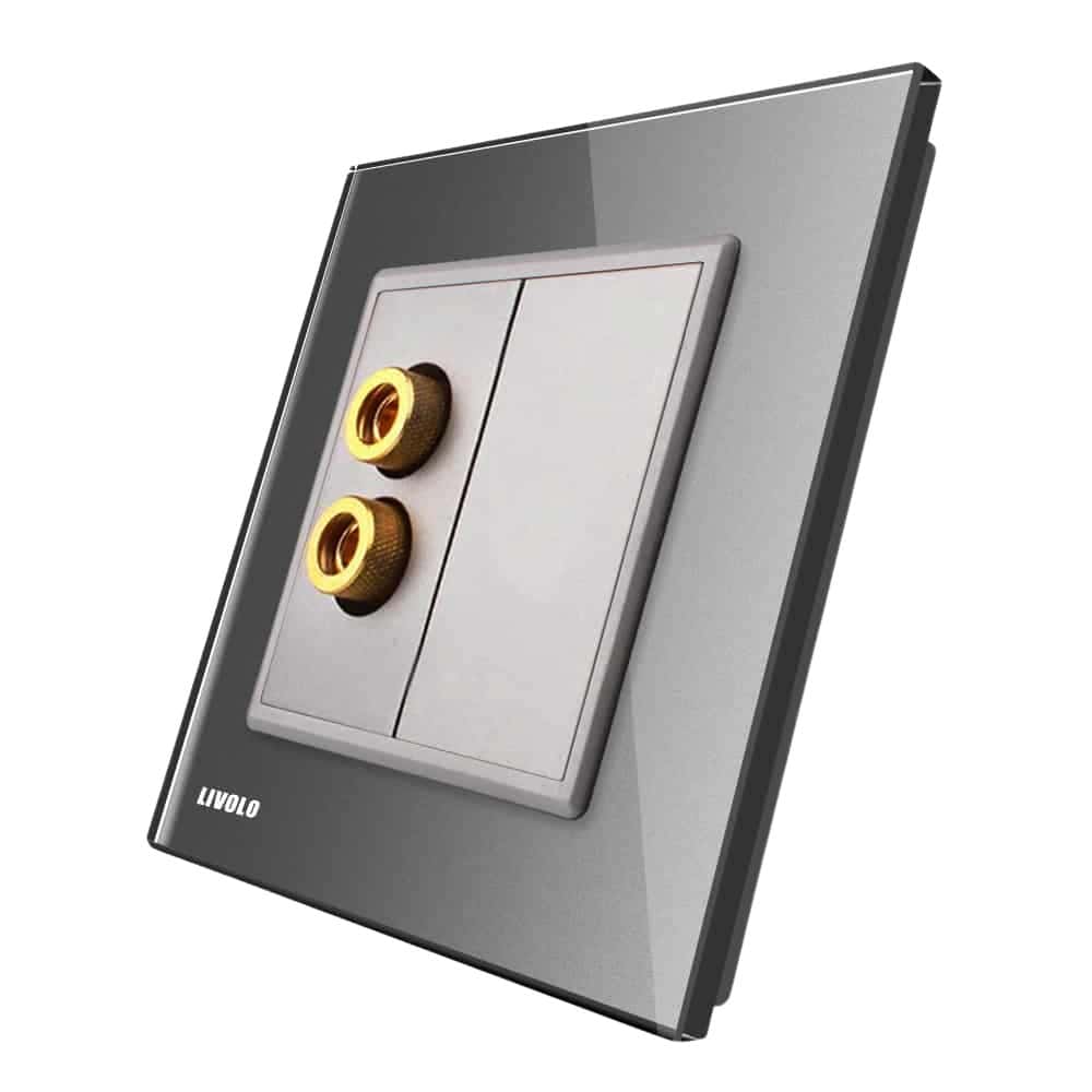 Priza simpla audio Livolo cu rama din sticla, gri, VL-C791AD-15