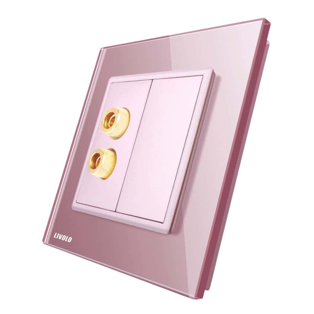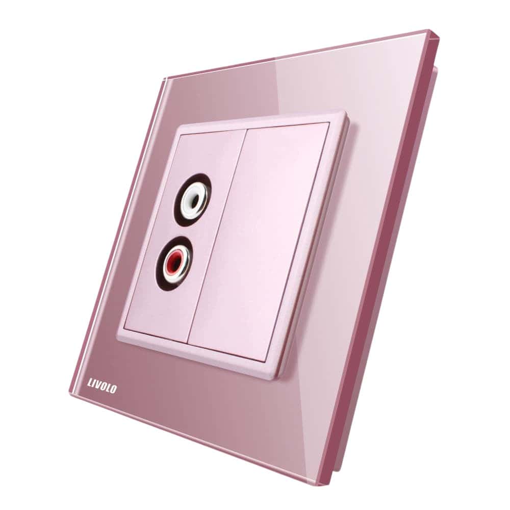 Priza simpla audio Livolo cu rama din sticla, roz, VL-C791AD-17