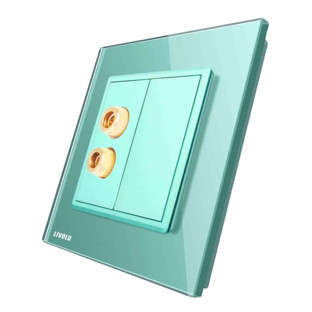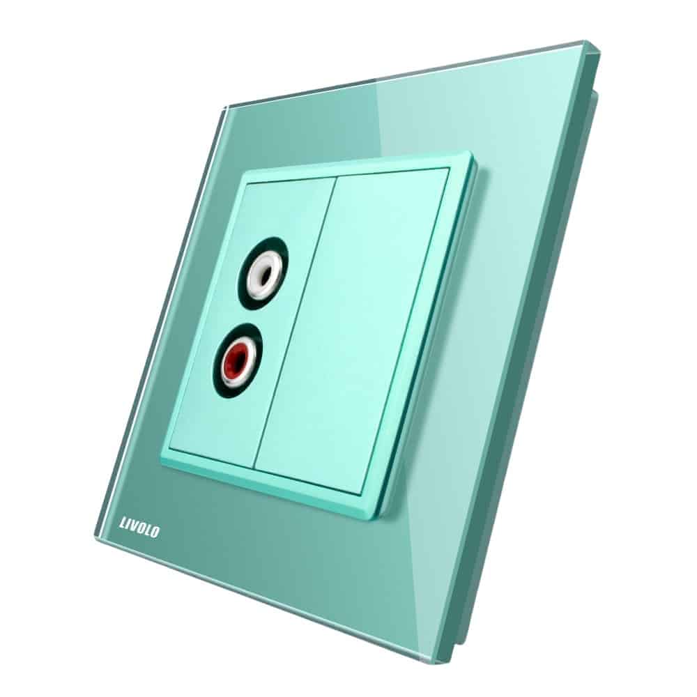 Priza simpla audio Livolo cu rama din sticla, verde, VL-C791AD-18