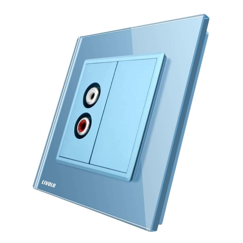 Priza simpla audio Livolo cu rama din sticla, albastru, VL-C791AD-19