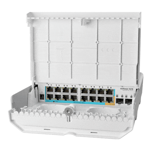 Smart Switch outdoor 16 x 10/100Mbps (15 PoE inversate), 2 x SFP – Mikrotik CRS318-1Fi-15Fr-2S-OUT