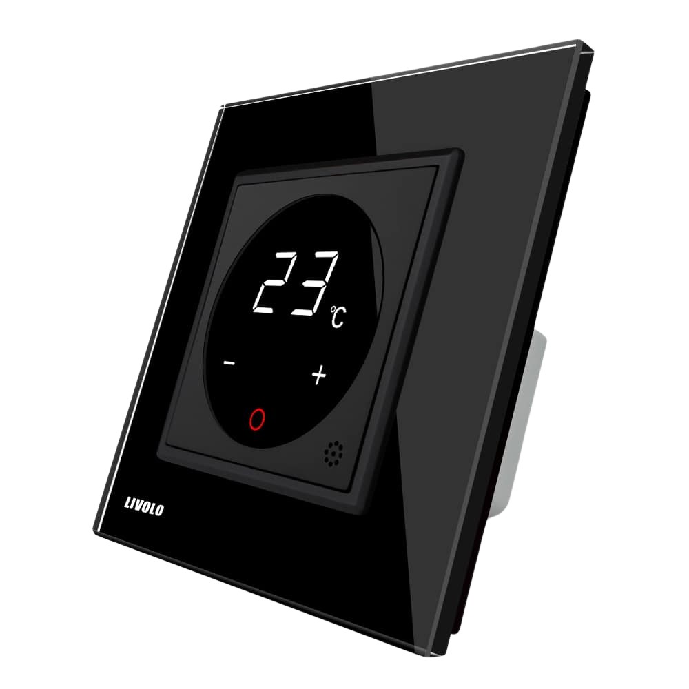 Termostat Livolo pentru sisteme de incalzire electrice, negru, VL-FCQ1-2BPS72-12
