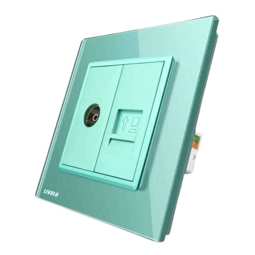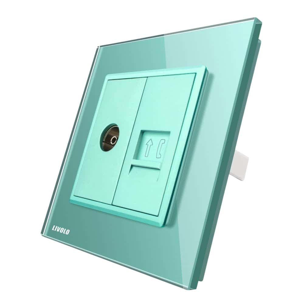 Priza dubla TV + priza internet Livolo cu rama din sticla, verde, VL-C791VC-18