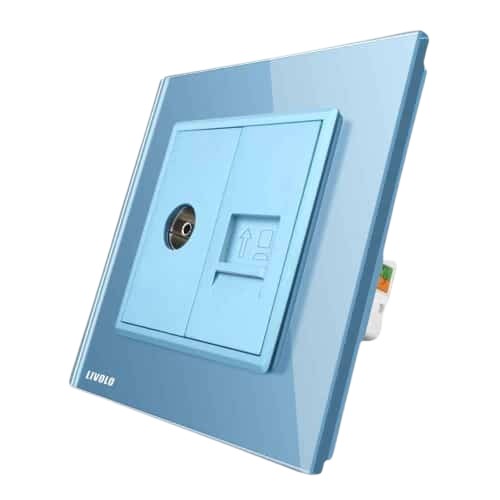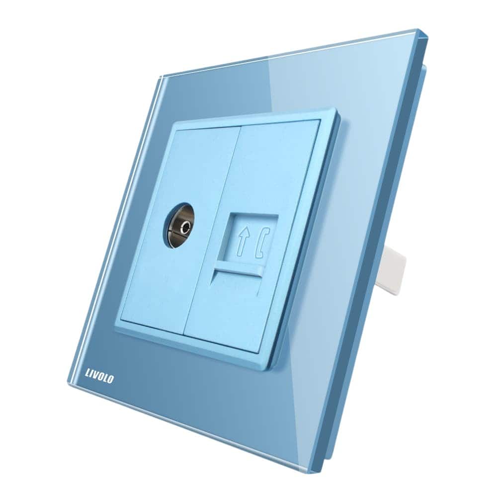 Priza dubla TV + priza internet Livolo cu rama din sticla, albastru, VL-C791VC-19