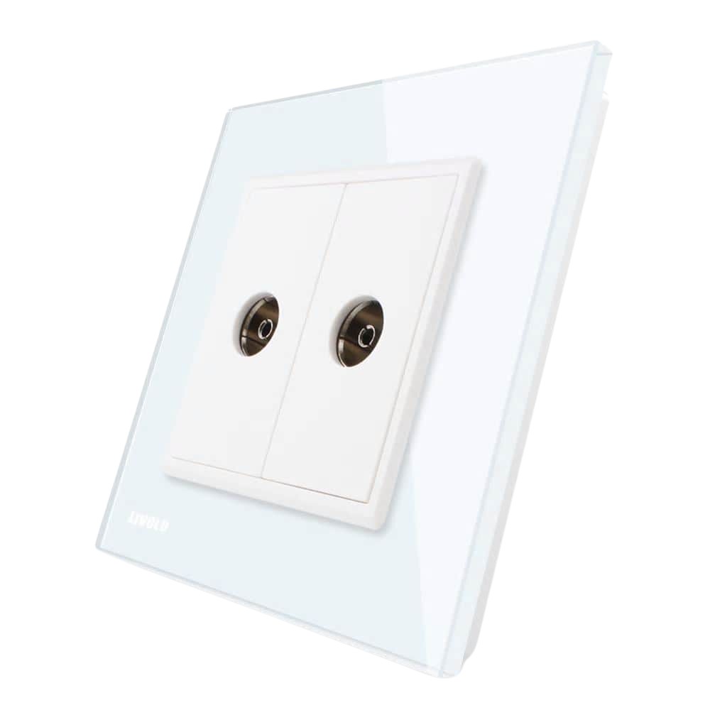 Priza dubla TV Livolo cu rama din sticla, alb, VL-C792V-11