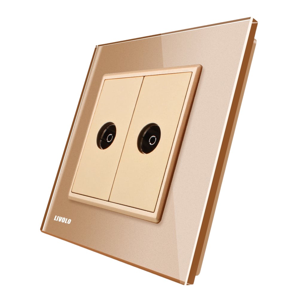 Priza dubla TV Livolo cu rama din sticla, auriu, VL-C792V-13