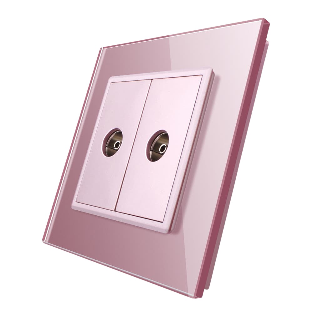 Priza dubla TV Livolo cu rama din sticla, roz, VL-C792V-17