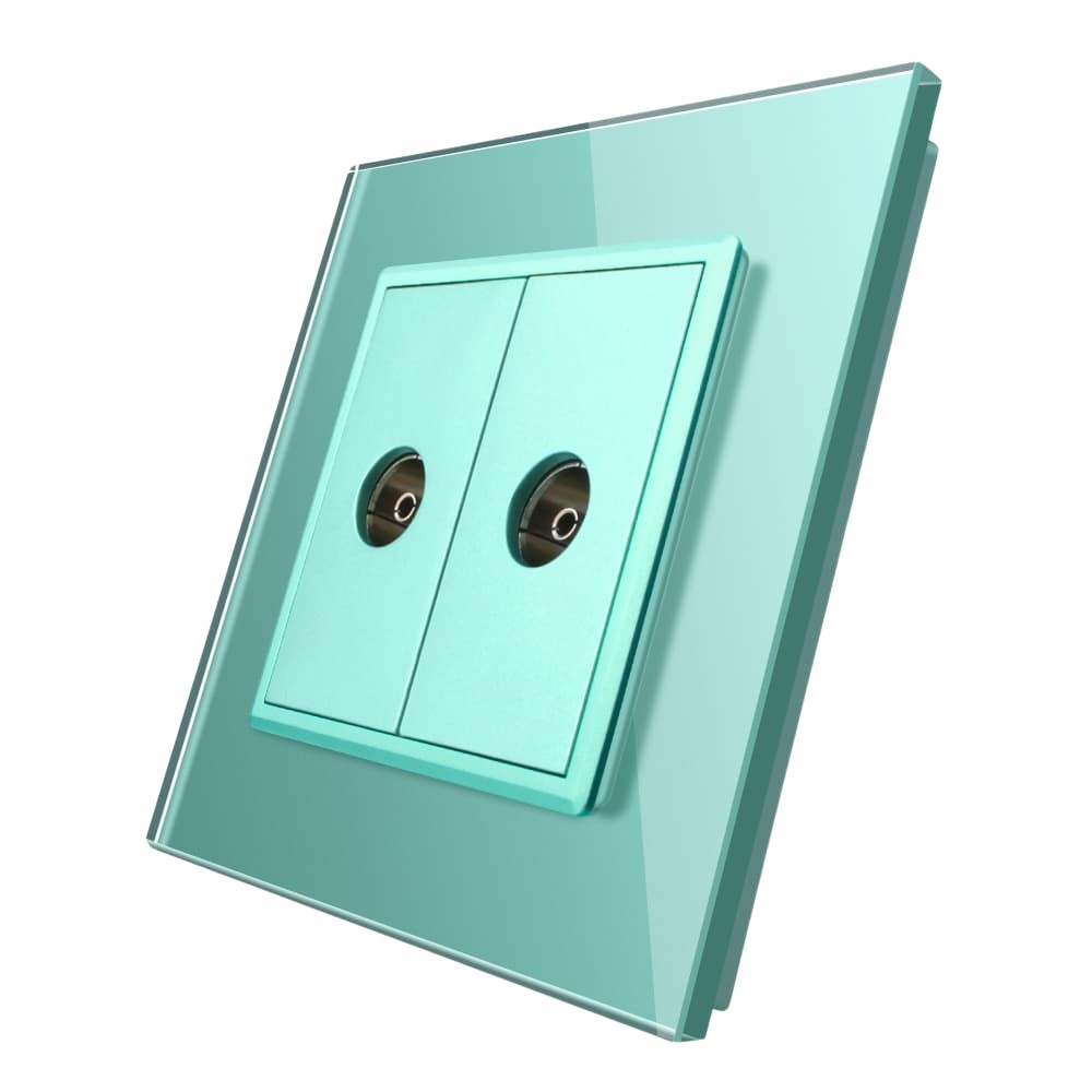 Priza dubla TV Livolo cu rama din sticla, verde, VL-C792V-18
