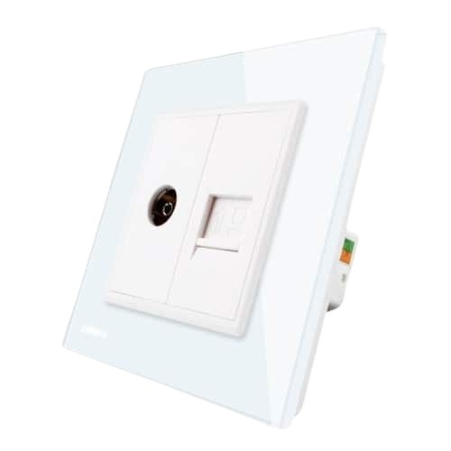 Priza dubla TV + priza internet Livolo cu rama din sticla, alb, VL-C791VC-11
