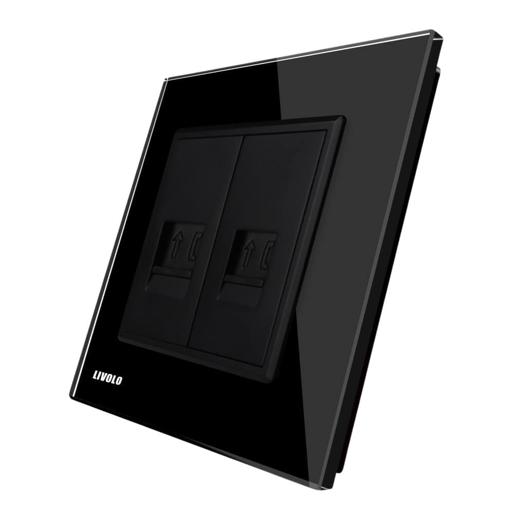 Priza dubla Telefon Livolo cu rama din sticla, negru, VL-C792T-12