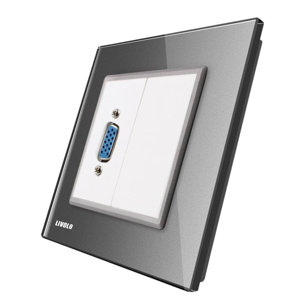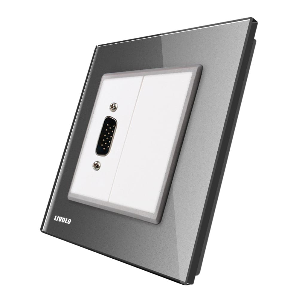 Priza cu mufa VGA mama Livolo cu rama din sticla, gri, VL-C791VG1-15