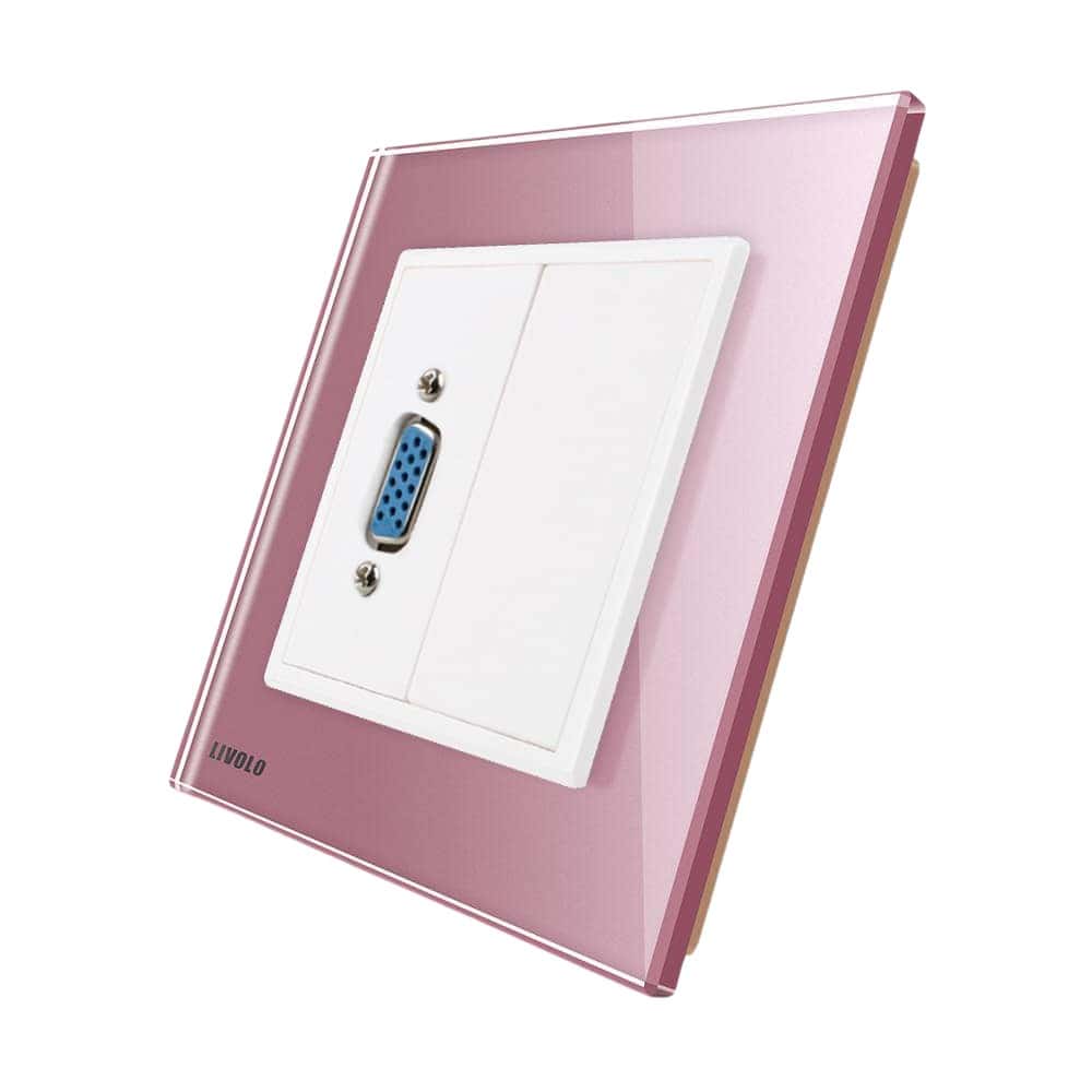 Priza cu mufa VGA mama Livolo cu rama din sticla, roz, VL-C791VG1-17