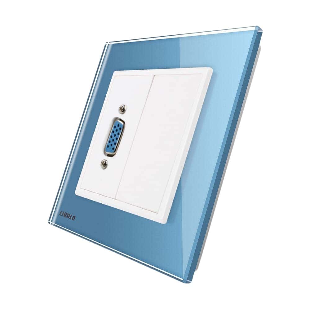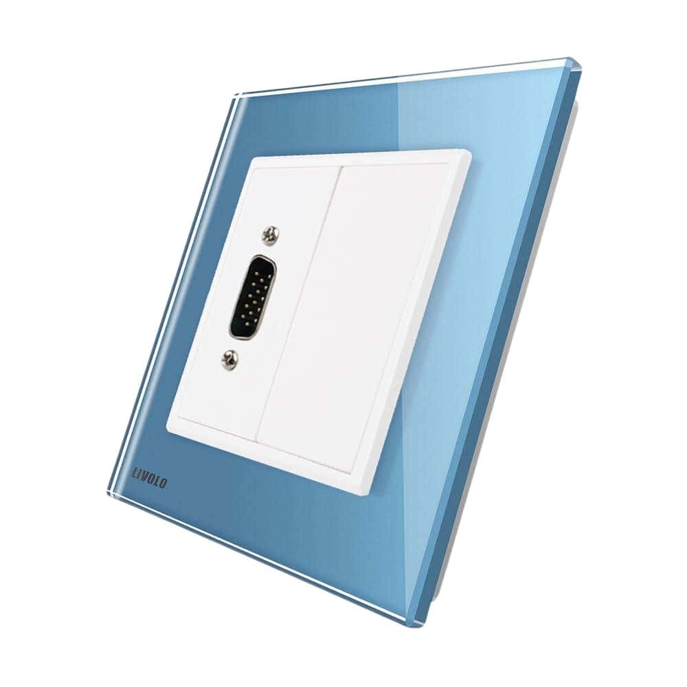 Priza cu mufa VGA mama Livolo cu rama din sticla, albastru, VL-C791VG1-19