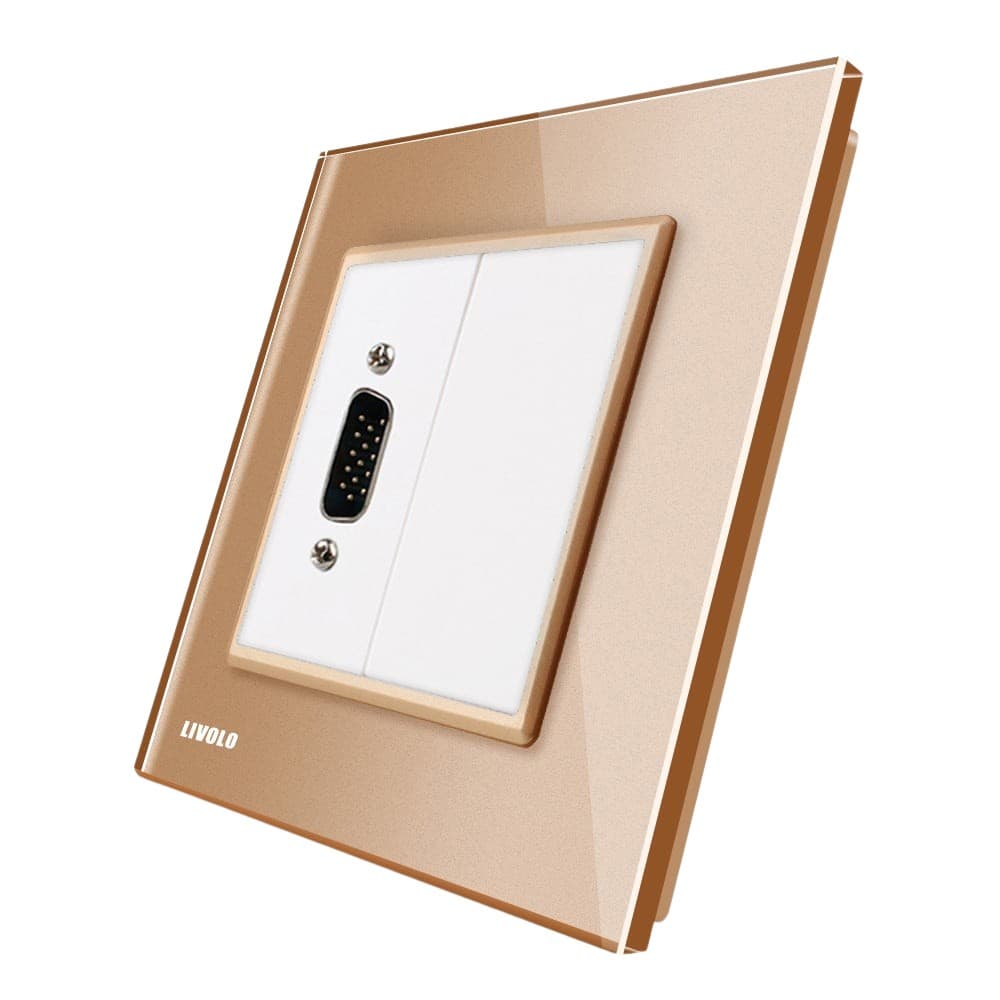 Priza cu mufa VGA mama Livolo cu rama din sticla, auriu, VL-C791VG1-13