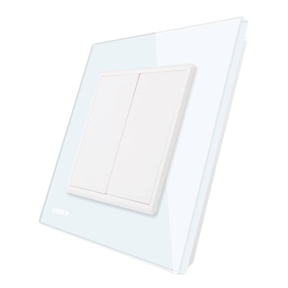 Priza blank/goala Livolo cu rama din sticla, alb, VL-C792K-11