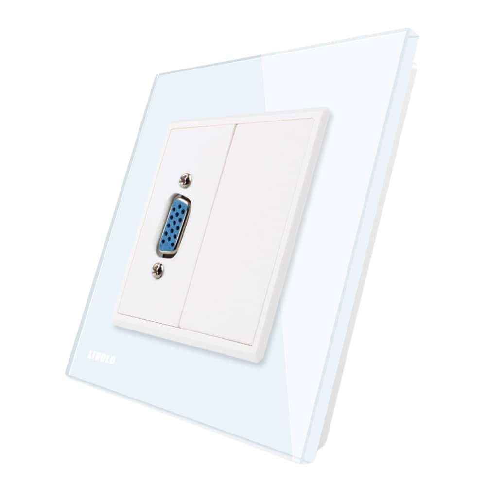 Priza cu mufa VGA mama Livolo cu rama din sticla, alb, VL-C791VG1-11