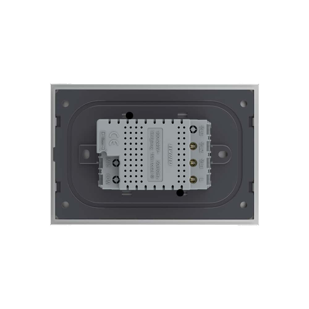 Intrerupator dublu cu touch Livolo standard italian, din sticla crystal securizata, termorezistenta, compatibil cu modulele de intrerupator Livolo. Intrerupatoarele Livolo folosesc un senzor tactil cu 100 ms timp de raspuns, similar cu tehnologia folosita la smartphone-uri. Panoul din sticla al intrerupatorului, este din sticla securizata, rezistenta la foc. Ledul rosu/albastru indica statusul on/off al intrerupatorului.