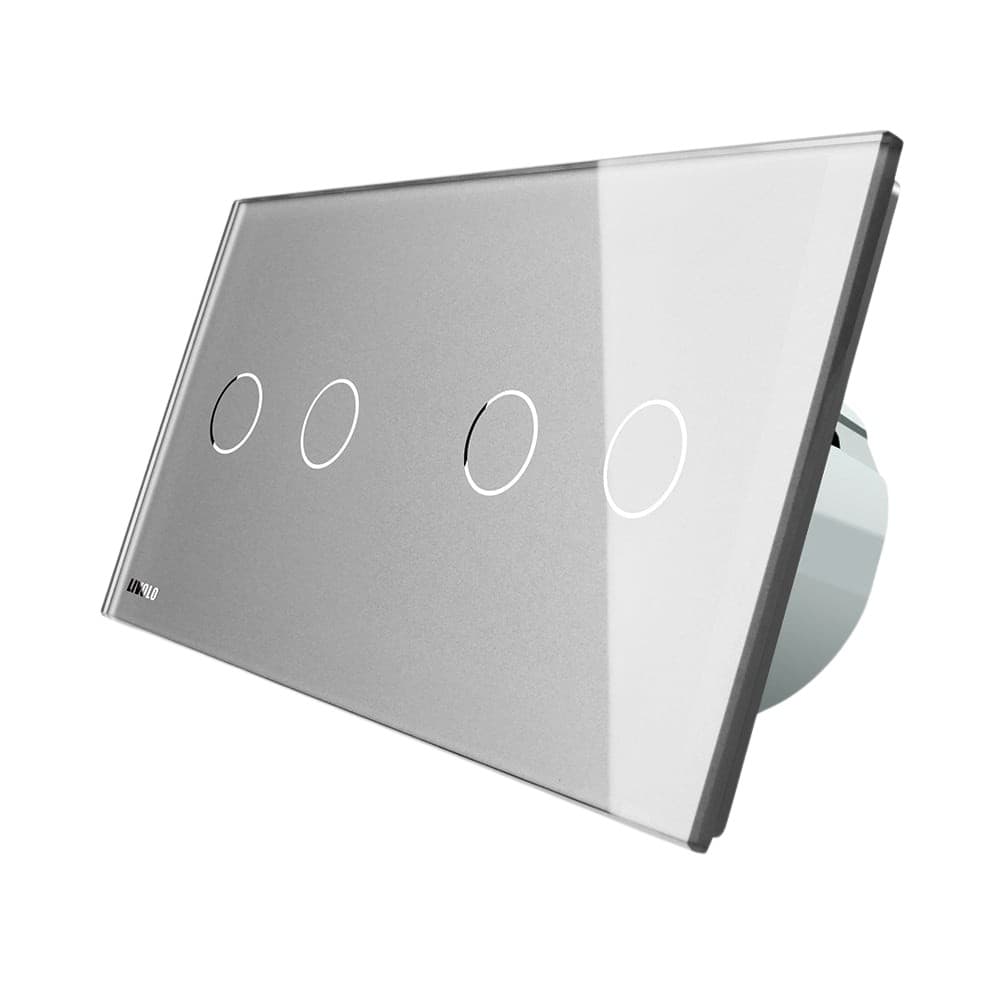Intrerupator dublu + dublu cu touch Wireless Livolo din sticla, gri, VL-C702R/C702R-15