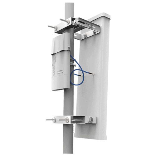 Vine cu un inel de montare pentru prinderea pe turn/stalp si este, de asemenea, furnizat un suport de sina DIN separat. Pachetul include, de asemenea, un injector PoE si o unitate de alimentare.