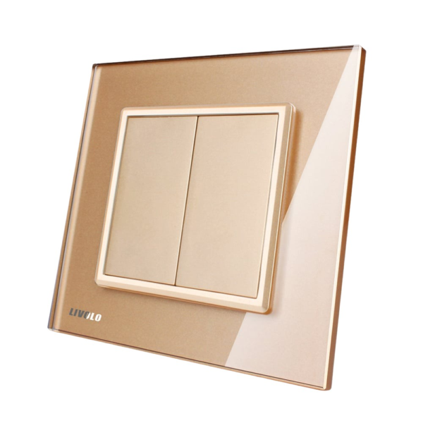 Priza blank/goala Livolo cu rama din sticla, auriu, VL-C792K-13