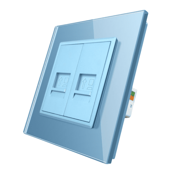Priza dubla internet Livolo cu rama din sticla, albastru, VL-C792C-19