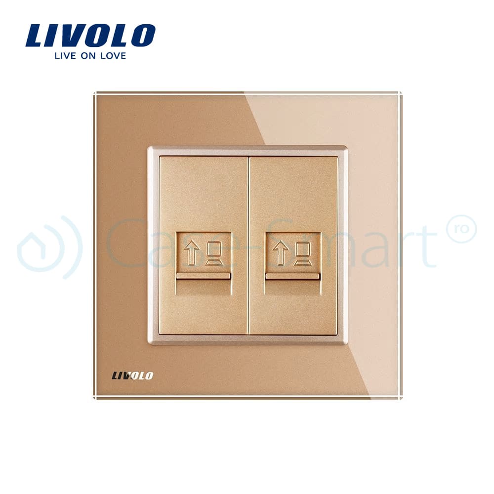 Priza dubla internet Livolo cu rama din sticla, auriu, VL-C792C-13