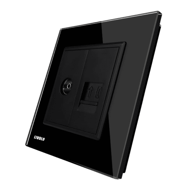 Priza dubla TV + Telefon Livolo cu rama din sticla, negru, VL-C791VT-12