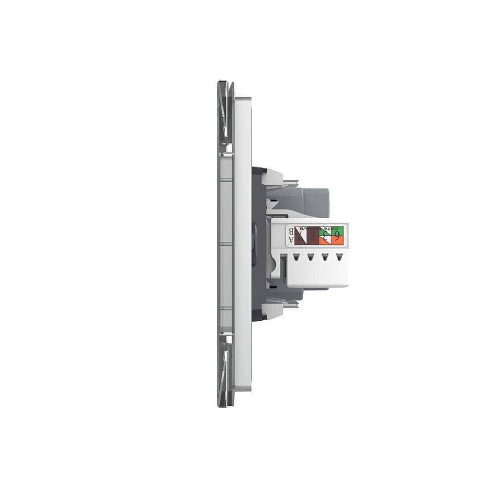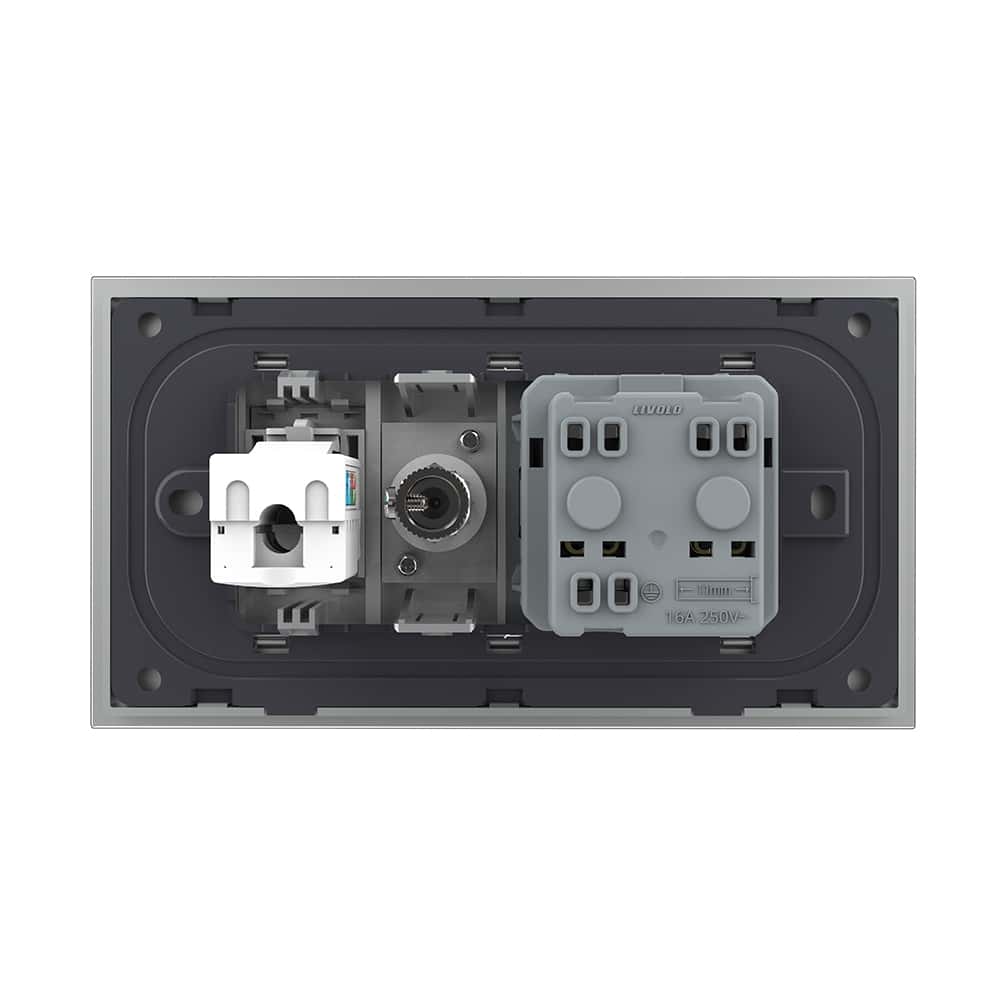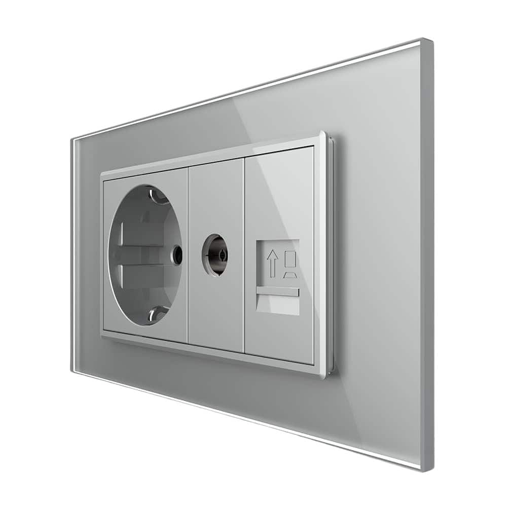 Priza Dubla Livolo cu Rama din Sticla 1 Priza Schuko+TV/internet, Standard Italian – Serie Noua, gri, VL-C9-C2EU/VC-15