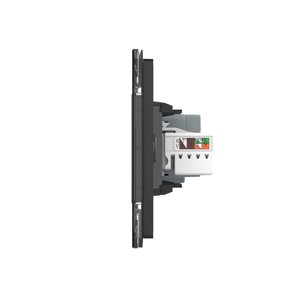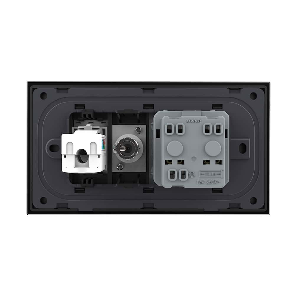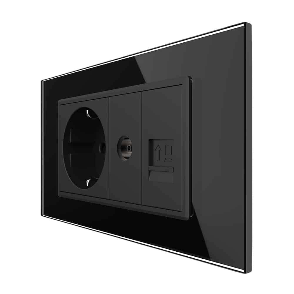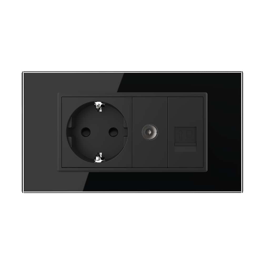 Priza Dubla Livolo cu Rama din Sticla 1 Priza Schuko+TV/internet, Standard Italian – Serie Noua, negru, VL-C9-C2EU/VC-12