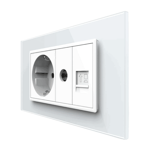 Priza Dubla Livolo cu Rama din Sticla 1 Priza Schuko+TV/internet, Standard Italian - Serie Noua, alb, VL-C9-C2EU/VC-11