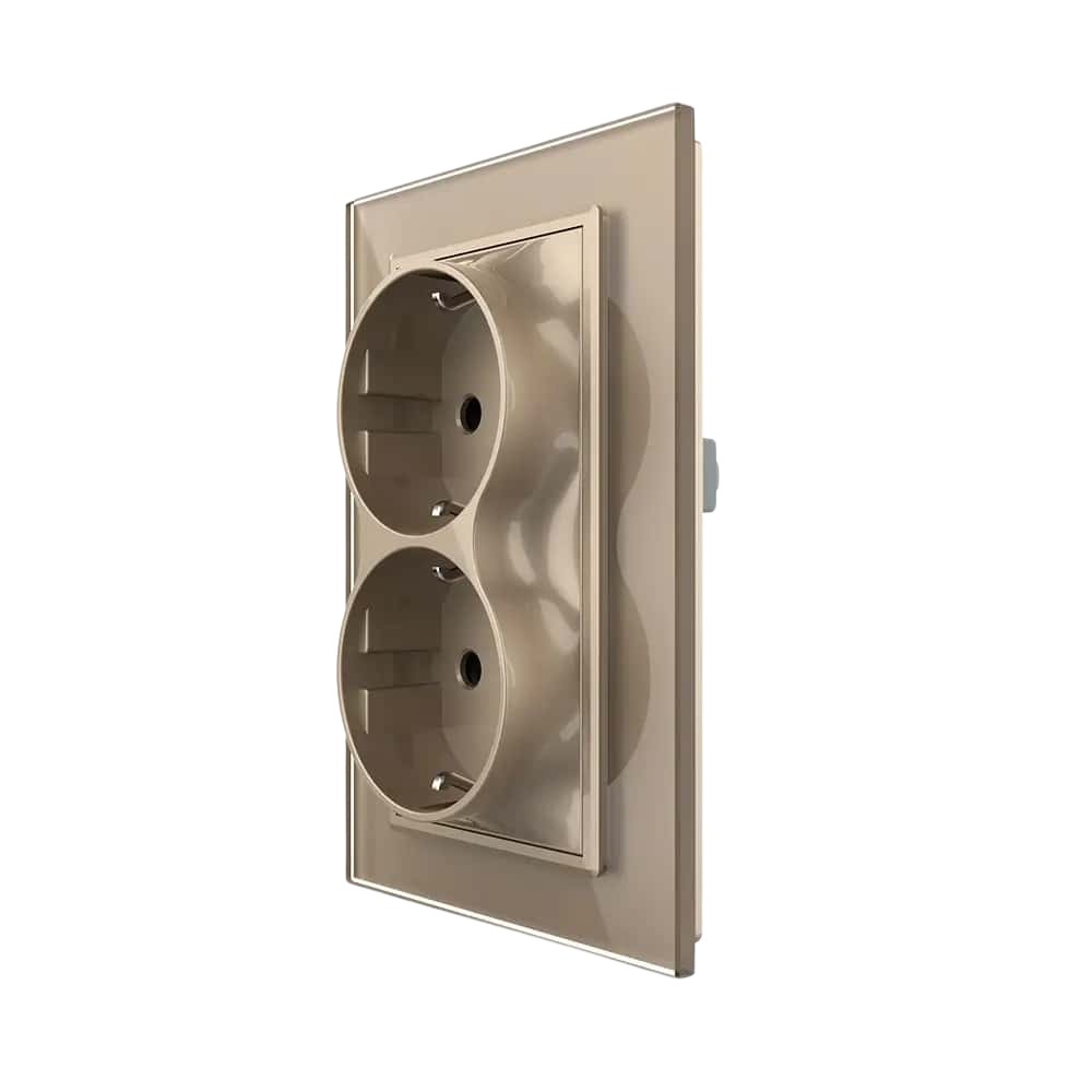 Priza Dubla Livolo cu Rama din Sticla Pentru Doza Simpla, auriu, VL-C7CTF16A-A