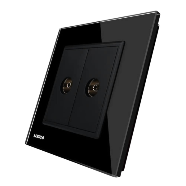 Priza media dubla Livolo cu rama din sticla, pentru TV, se monteaza direct in perete, si astfel puteti ascunde cablurile electrice inestetice. Aceasta priza din sticla are un design inovativ si este realizata din sticla securizata.
