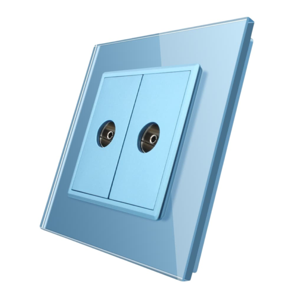 Priza dubla TV Livolo cu rama din sticla, albastru, VL-C792V-19