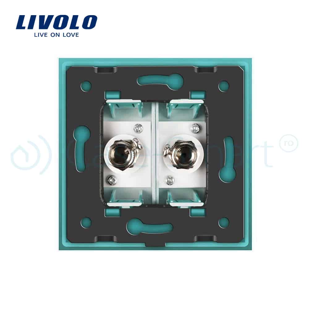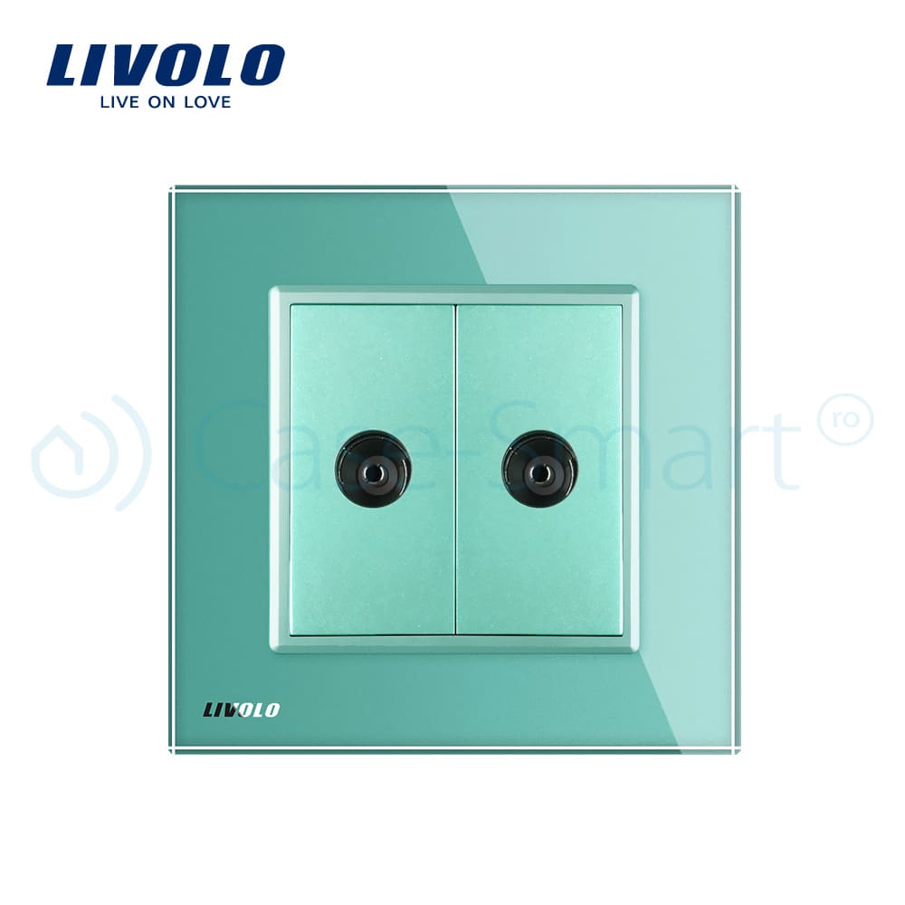Priza dubla TV Livolo cu rama din sticla, verde, VL-C792V-18