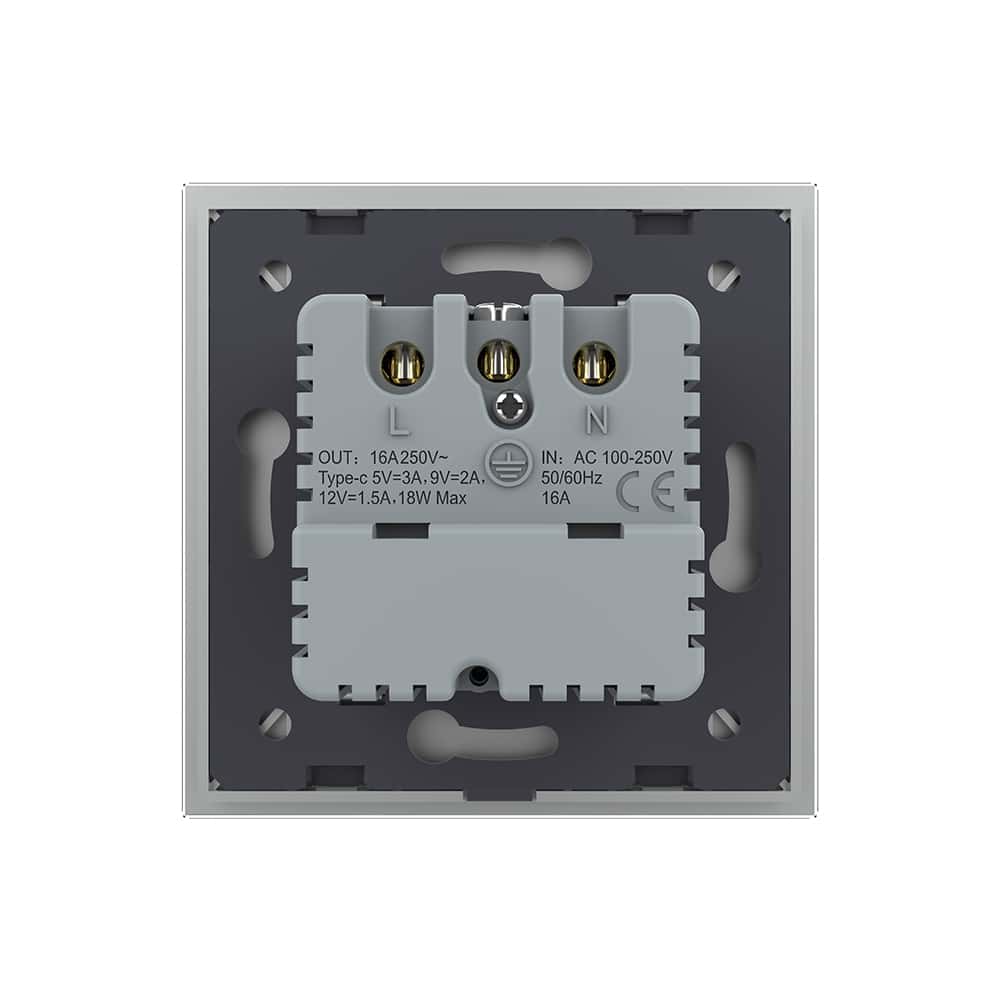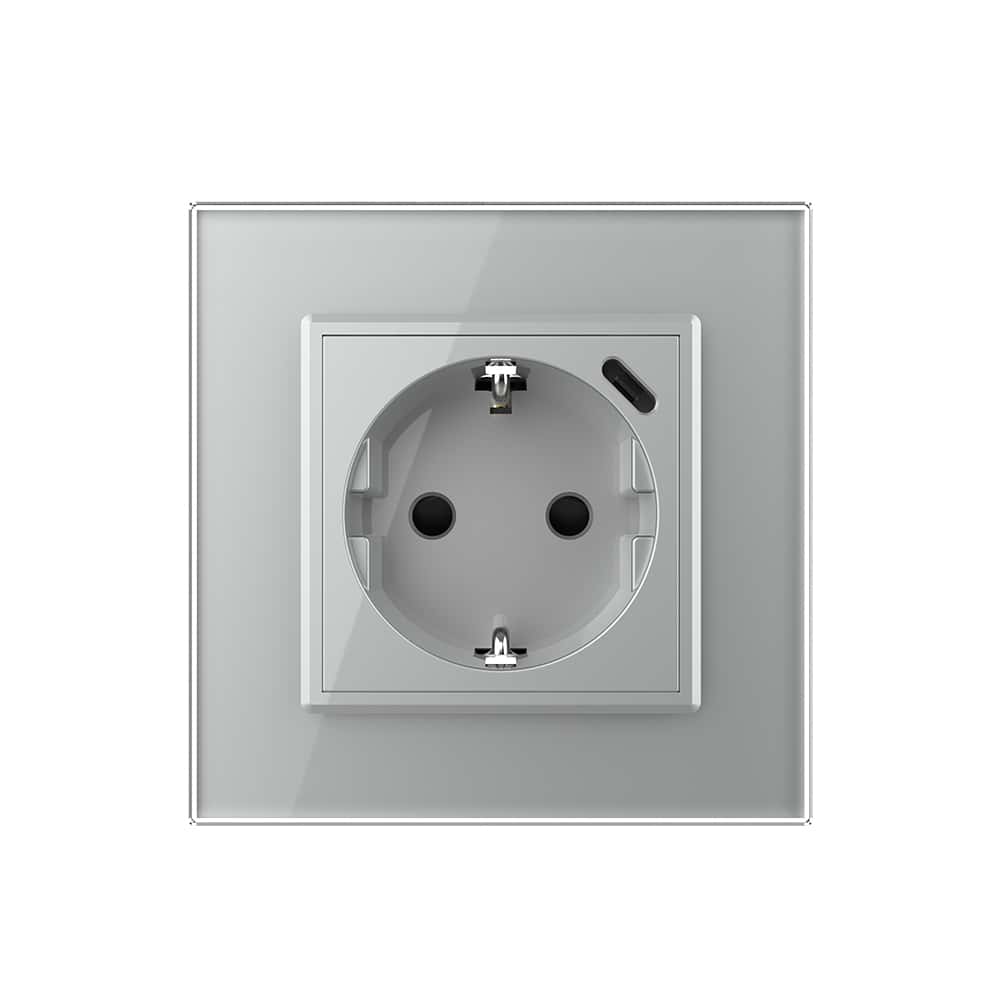 Priza schuko + USB C, standard german LIVOLO cu rama din sticla. Produsul este ideal pentru case, birouri, spatii comerciale, hoteluri. Se monteaza in doza cu distanta intre suruburi de 60 mm.