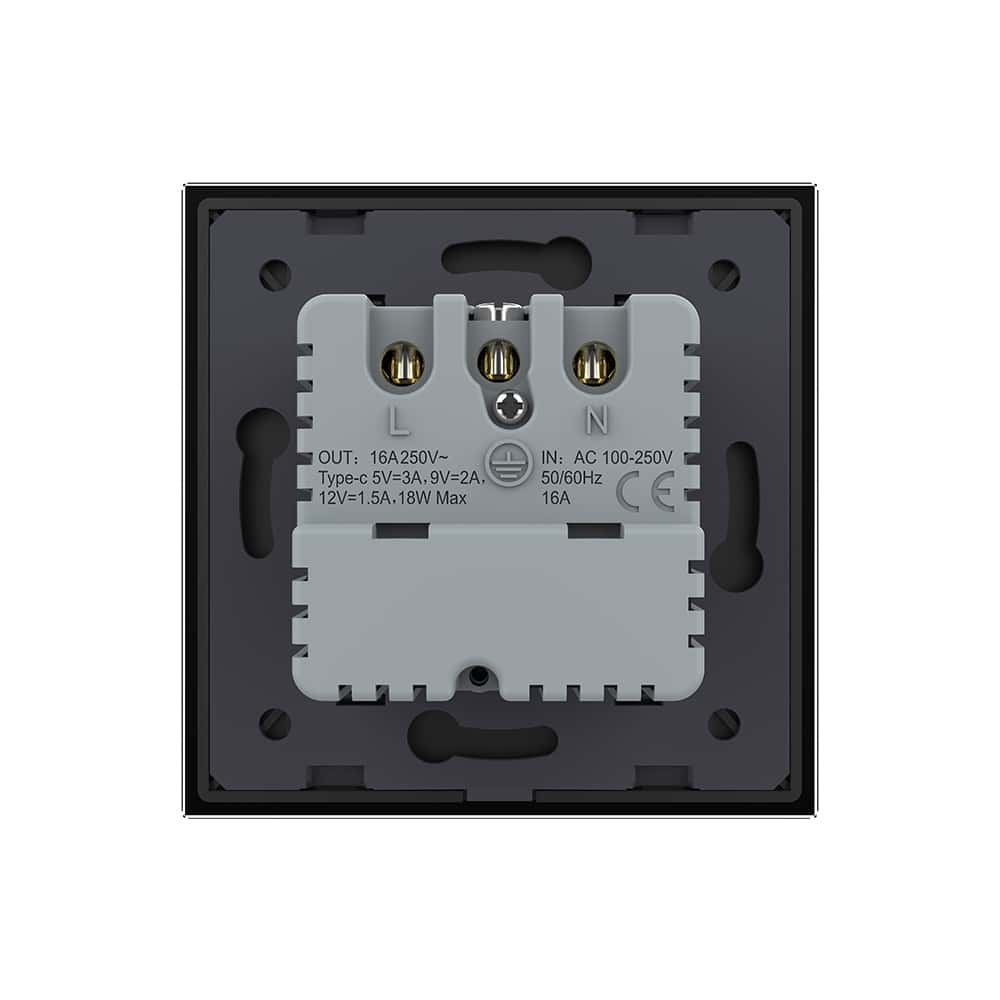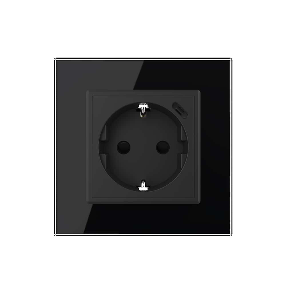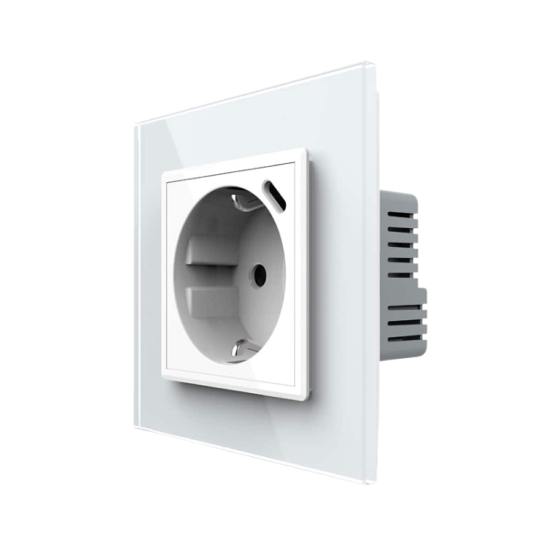 Priza schuko + USB C, standard german LIVOLO cu rama din sticla. Produsul este ideal pentru case, birouri, spatii comerciale, hoteluri. Se monteaza in doza cu distanta intre suruburi de 60 mm.
