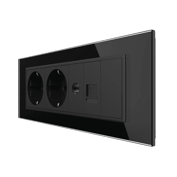 Priza Tripla cu Blank Livolo cu Rama din Sticla 2 Prize Schuko+TV/internet, Standard Italian - Serie Noua, negru, VL-C9-C3EU/VC-12