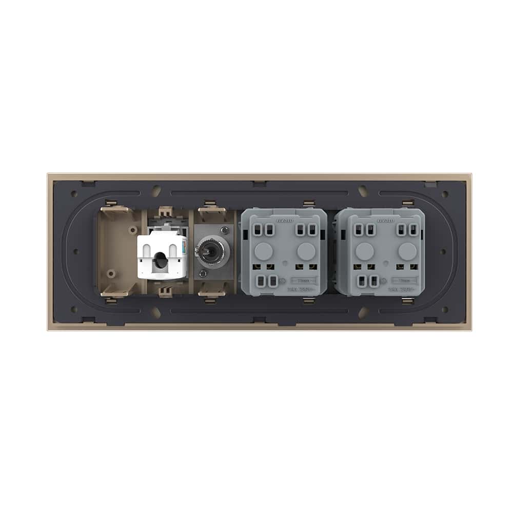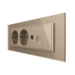Priza Tripla cu Blank Livolo cu Rama din Sticla 2 Prize Schuko+TV/internet, Standard Italian – Serie Noua, auriu, VL-C9-C3EU/VC-13