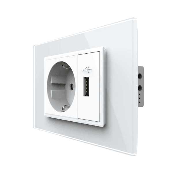 Priza simpla cu USB Livolo standard italian, alb, VL-C9C1EU1U-11