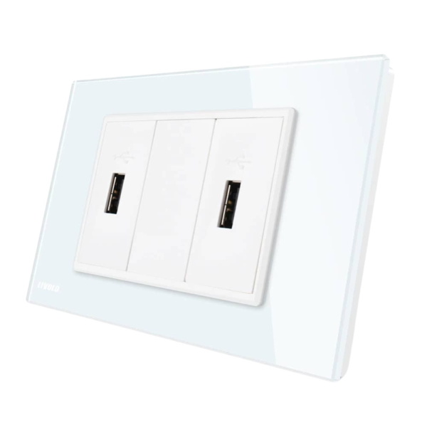 Priza dubla USB Livolo cu rama din sticla - standard italian, alb, VL-C392U-81