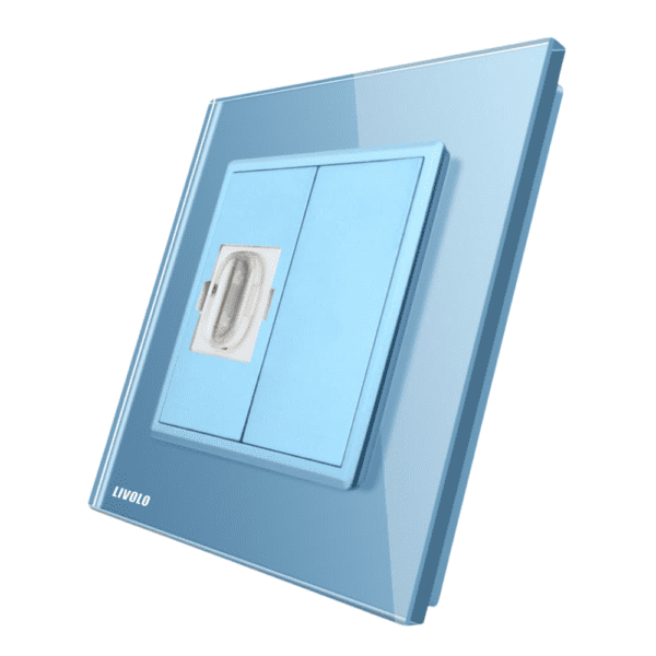 Priza USB Livolo cu rama din sticla, albastru, VL-C791USB-19