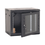 Cabinet metalic neasamblat cu montare pe perete ce permite instalarea echipamentelor standard 19′ dar si a celor pentru CCTV, CATV prin utilizarea de rafturi aditionale.