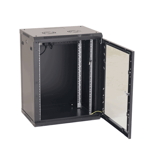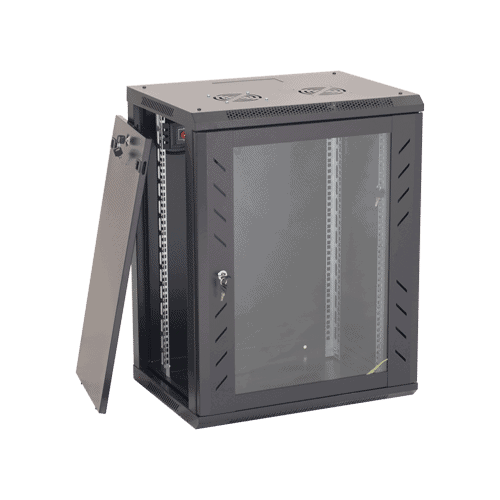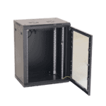 Cabinet metalic neasamblat cu montare pe perete ce permite instalarea echipamentelor standard 19′ dar si a celor pentru CCTV, CATV prin utilizarea de rafturi aditionale.