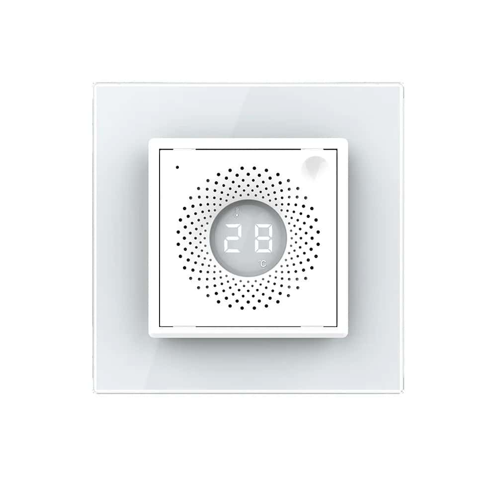 Senzor de Temperatura si Umiditate Livolo cu Rama din Sticla, Protocol Zigbee, alb, VL-FCEZ-2WP-11