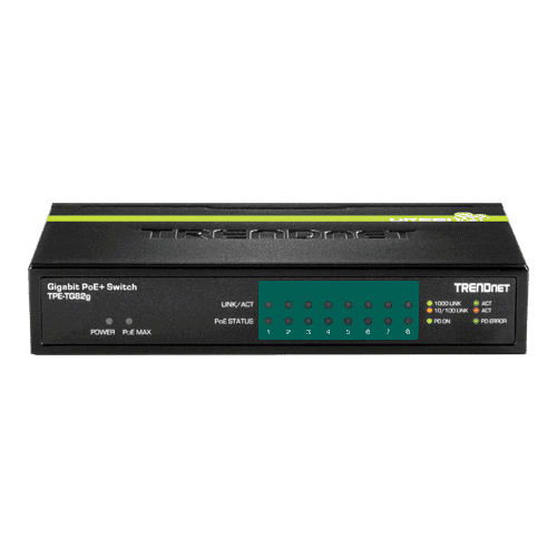 Switch-ul Gigabit PoE+ cu 8 porturi, model TPE-TG82g, furnizeaza date si alimentare prin cablurile Ethernet existente catre dispozitivele Power over Ethernet (PoE), cum ar fi access point-urile si camerele IP. Suporta atat dispozitive PoE, cat si PoE+ cu un buget PoE de 61 W. Pur si simplu conectati acest switch metalic robust pentru a avea o retea PoE fiabila de mare viteza.
